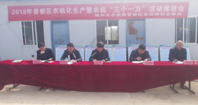 3月30日随州市农机局、曾都区农机局在曾都区府河镇礼财农机专业合作社召开了“2018年曾都区农机化生产暨农机‘三个一万’活动推进会”,来自曾都区各乡镇农机服务中心、农机专业合作社、农机大户及种粮大户近200人参加活动。