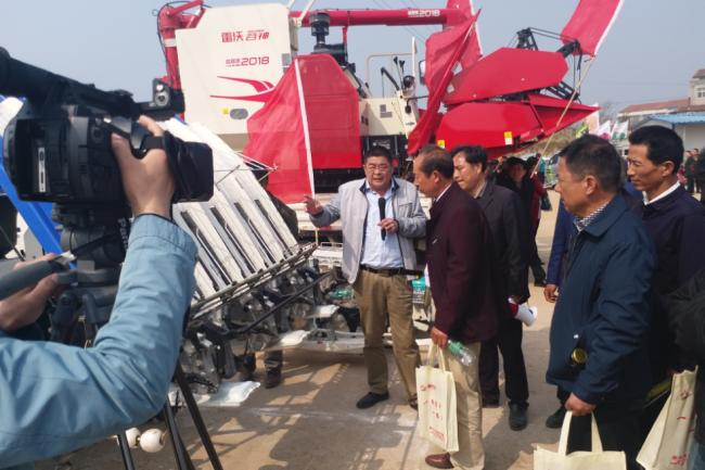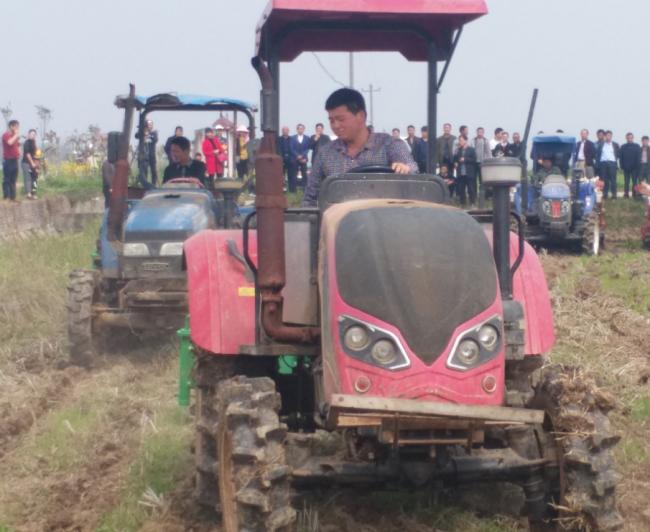 在新机具展示与演示现场。大型拖拉机、高性能插秧、育秧流水生产线等40种新机具参加展示,技术人员讲解得详细,群众听得真切。