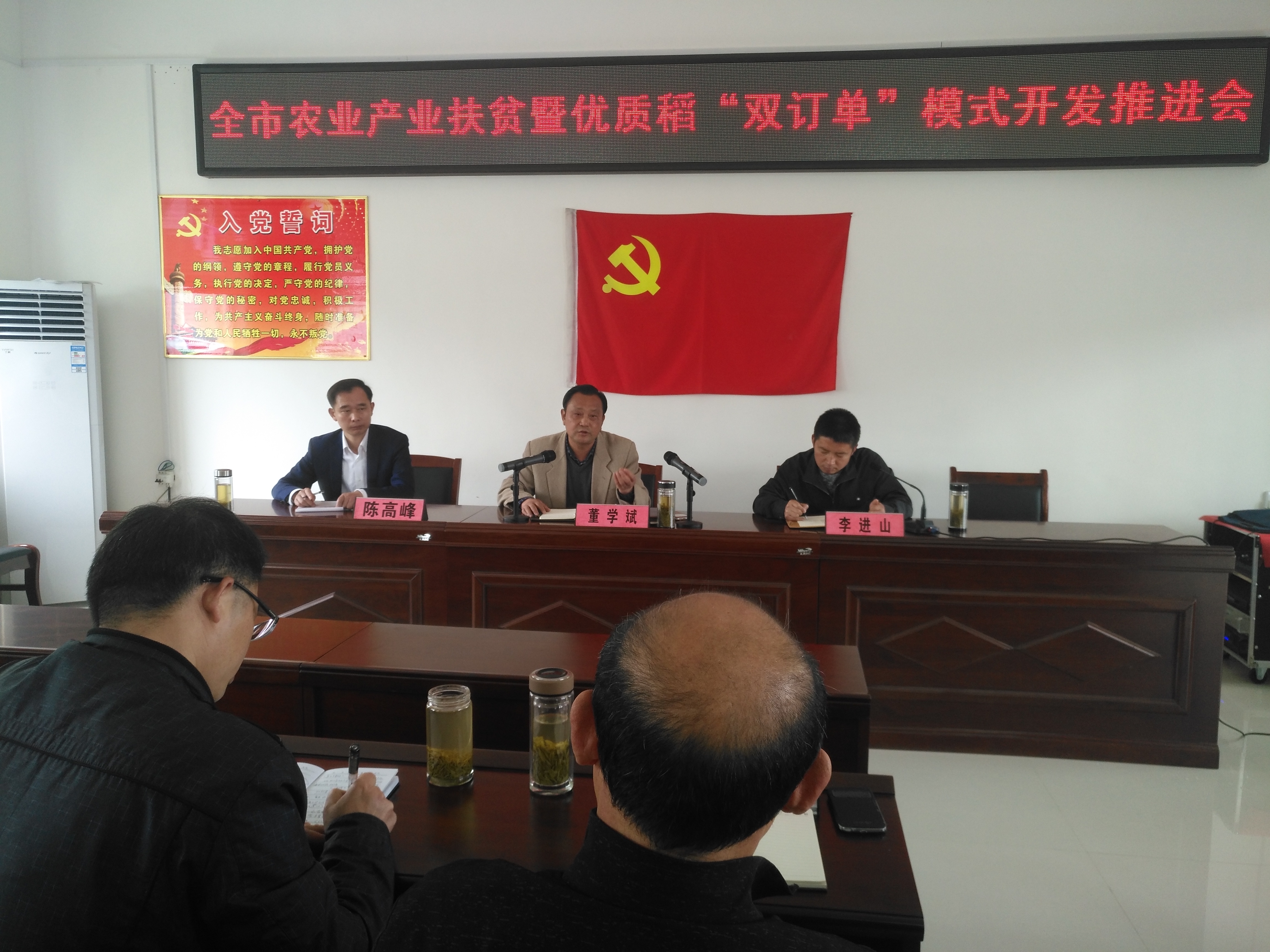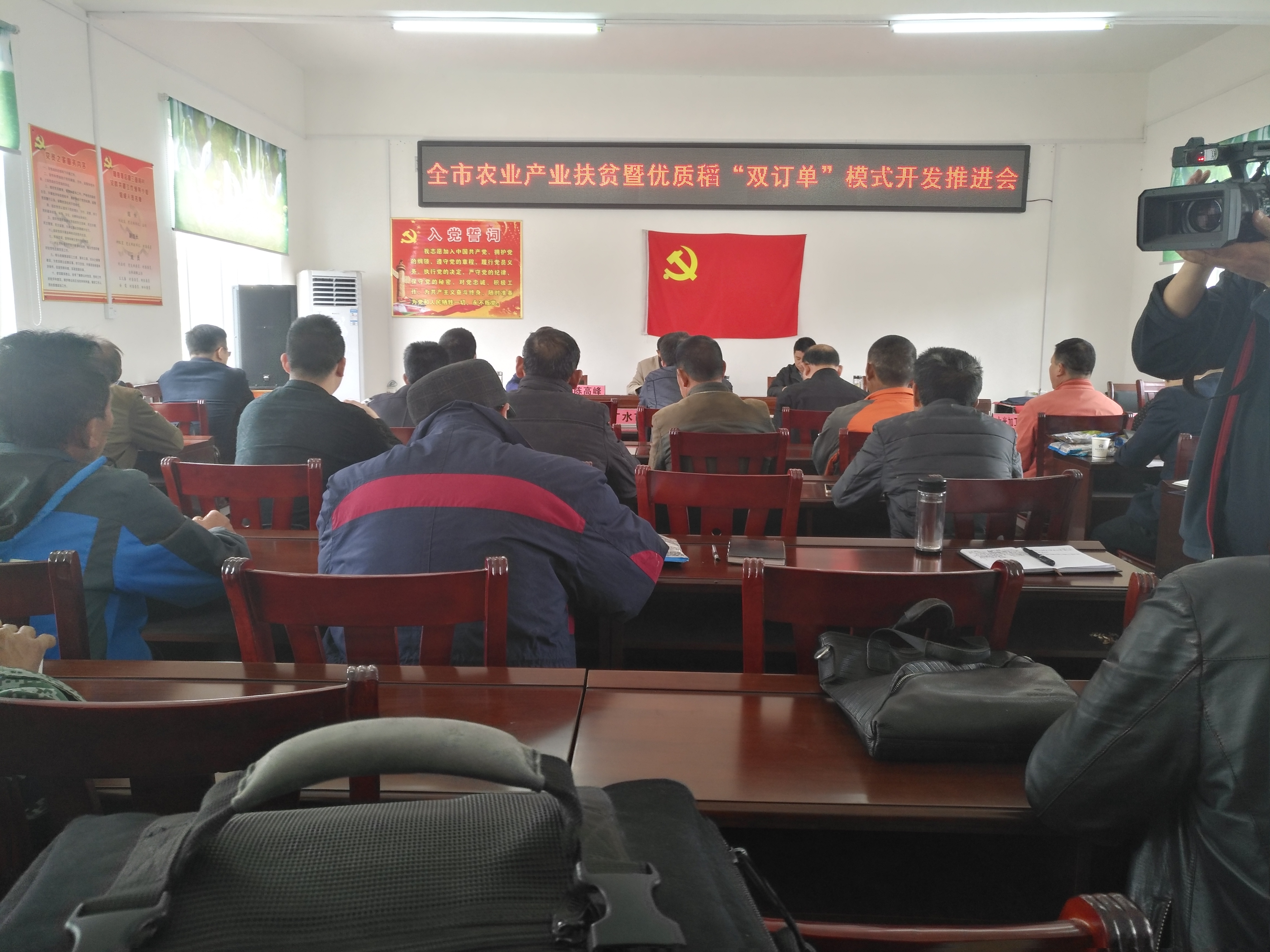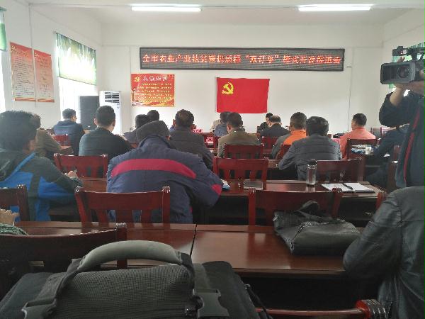 3月30日,市农业局在驻点帮扶村——随县草店镇三道河村召开全市农业产业扶贫暨优质稻产业“双订单”模式开发推进会,副局长董学斌同志出席会议并讲话,各县市区农业局分管副局长、相关科室负责人、种子经销企业代表、稻米加工企业代表、贫困户代表、种田大户代表参加会议。会议的主要目的是把优质稻产业开发与精准扶贫工作结合起来,在政府部门的引导推动下,充分发挥企业的主体带动作用,提供优质稻种,加价收购稻谷,带动贫困户、种田大户发展优质稻生产,达到贫困户增收、企业增效、产业发展的目的。