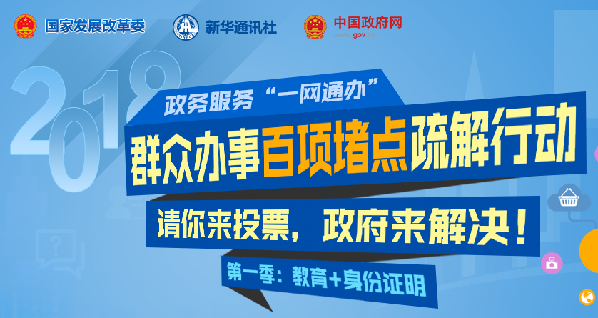 第一季将重点围绕教育、身份证明向社会征集首批“堵点”,对于群众反映最强烈的20个“堵点”问题,由涉及到的有关地方、部门限时解决。http://toupiao.www.gov.cn/100dudian/index.htm
